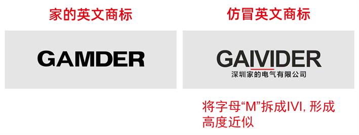 據(jù)家的開關(guān)合作客戶反映,消費者疑似購買到打家的開關(guān)品牌“擦邊球”的產(chǎn)品。家的公司經(jīng)過詳細調(diào)查,發(fā)現(xiàn)該現(xiàn)象屬實。“家的開關(guān)品牌英文商標為‘GAMDER’,仿冒商標名為‘GAIVIDER’,差別僅在于將字母‘M’拆分成‘IVI’,產(chǎn)品的外包裝還印有“某某家的電氣有限公司’。