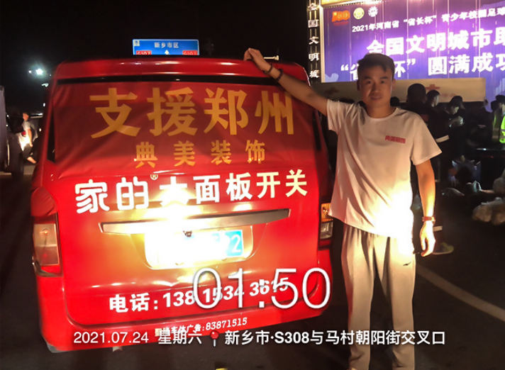 水災(zāi)無情,人有情。河南暴雨災(zāi)難牽動社會各界,人們紛紛捐款捐物,支援防汛抗災(zāi)前線以及災(zāi)后重建工作。家的公司也十分關(guān)切河南災(zāi)情。7月23日,家的開關(guān)品牌合作伙伴——江蘇省徐州精忠電氣設(shè)備有限公司岳總,星夜馳援河南。