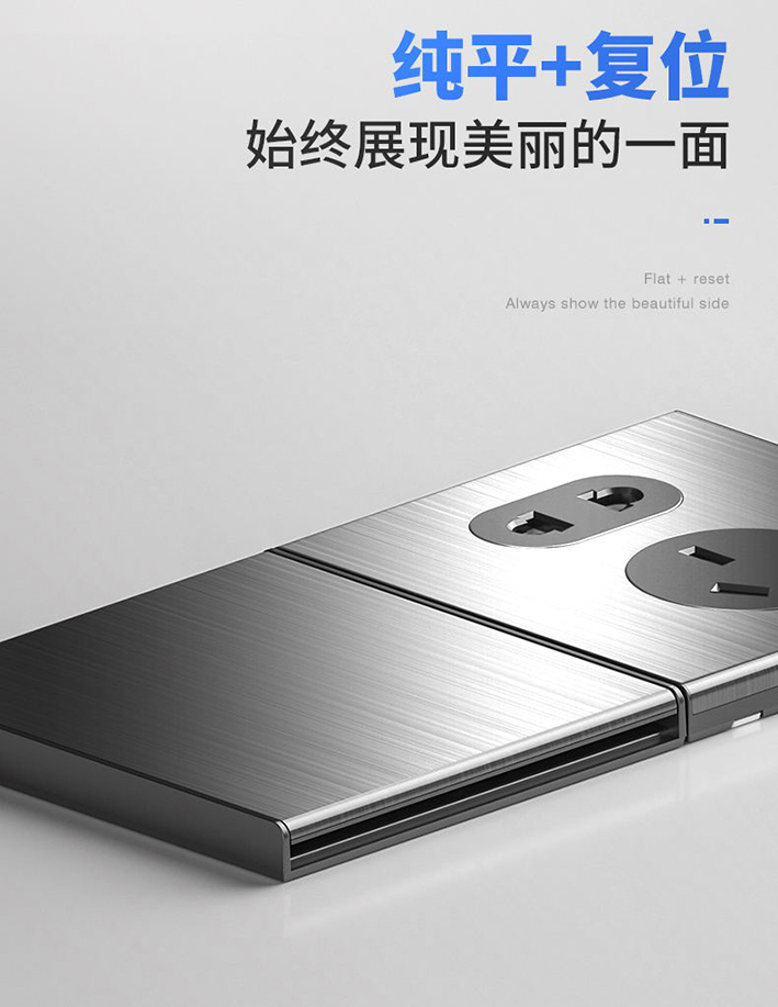 技術方面。SA3級金屬拉絲:工藝精湛,達到開關面板美觀,抗腐蝕,質感細膩的良好效果。復位技術:與翹板開關相比,復位開關是純平的,操控方式跟鼠標一樣,輕松點擊實現開與關,而且顯得美觀、高雅。家的設計師在這項技術上積累了多年的研發經驗,可靠性強。
