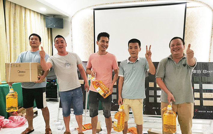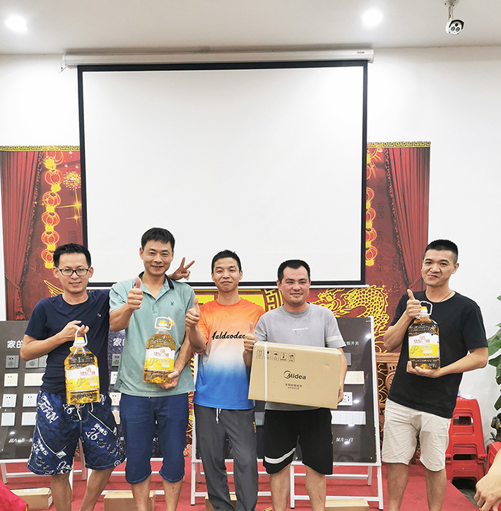 在品嘗美食之后,活動環節到開關安裝比賽。水電工師傅們踴躍參加,使出各自的看家本領。比賽選手根據安裝效率高低,依次獲得獎品。獎品包括智能電飯鍋、食用油等。通過競技比賽,水電工師傅交流經驗,共同進步。