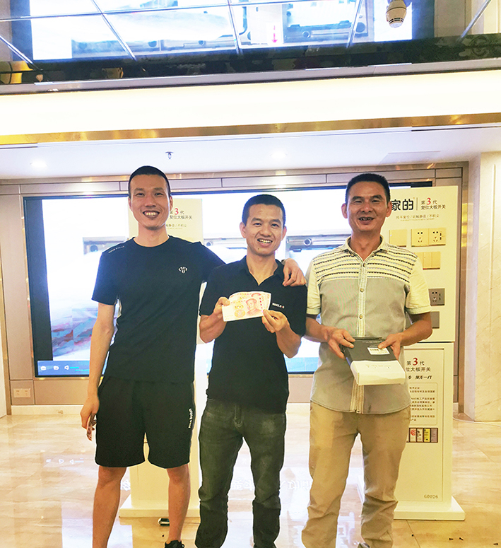 聽了區域經理黃堯濤的精彩演講,水電工師傅們對第3代復位大板開關給予認可。他們經常安裝開關插座,也都認同:傳統翹板開關,無論是在打開或關閉時,按鍵總有一頭翹起,欠美觀。而第3代復位大板開關,屬于純平復位結構,開關與插座始終同平同高,顯得更平整、協調、美觀。這有利于提升用戶的滿意度。專利復位技術,SA3級金屬噴砂工藝,真材實料等,也是大家欣賞第3代復位大板開關的亮點。